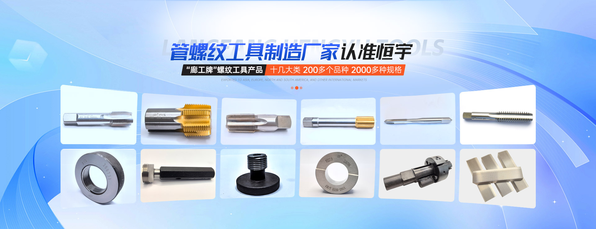 “廊工牌”螺紋工具產(chǎn)品,包括英標(biāo)、美標(biāo)、德標(biāo)管螺紋絲錐、公制螺紋絲錐、螺旋槽絲錐、擠壓絲錐、螺尖絲錐、板牙片及專用量具、檢具和其它與螺紋加工相關(guān)聯(lián)的專用設(shè)備,共十幾大類、200 多個(gè)品種、2000 多種規(guī)格